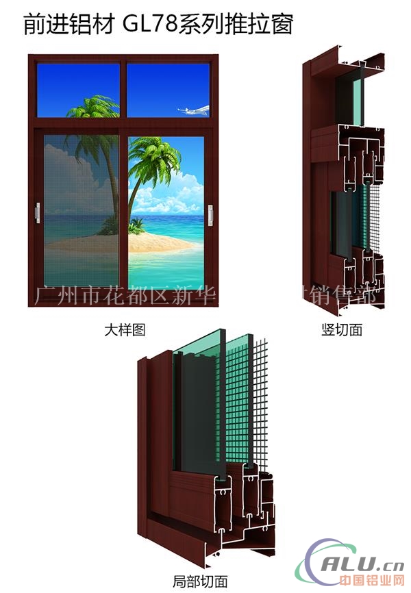 前进铝材(老广铝)铝合金门窗优势:面积大,通风好,密封性好,隔音、隔热、保温、性能优良;